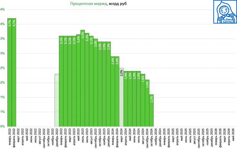 Процентная маржа 5,6% - это по-прежнему очень много, тем более портфель растёт.