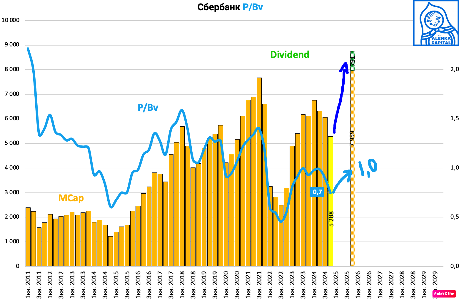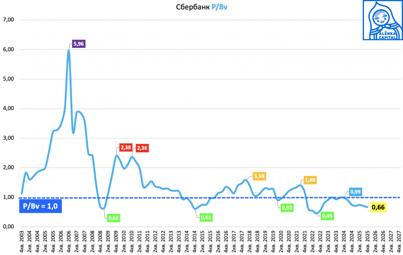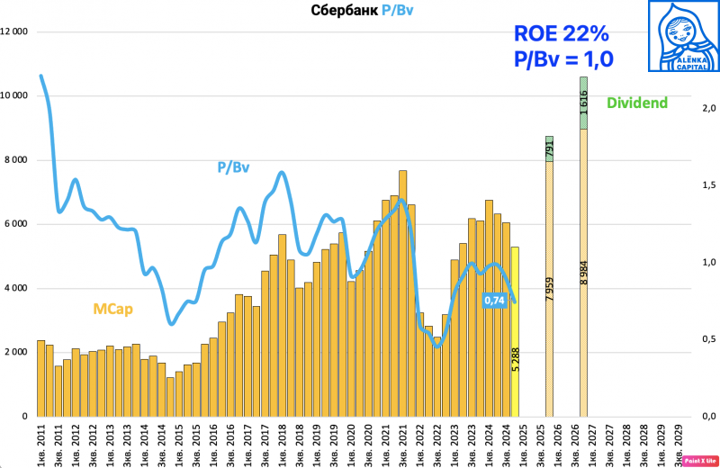 P/Bv 25 = 0,66 + 800 млрд рублей дивидендов в 2025 году.
