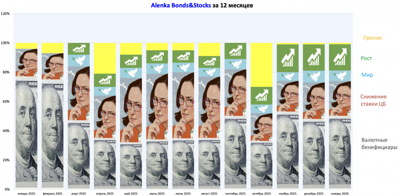 В портфелях есть все основные текущие идеи, которые перечислены в записи про стратегию https://alenka.capital/post/strategiya_2026_predvaritelnaya_zapis_114755/.