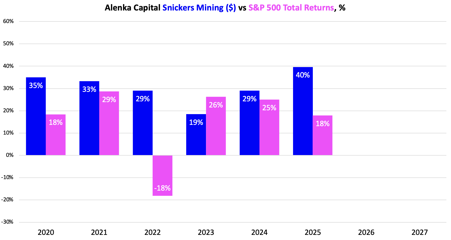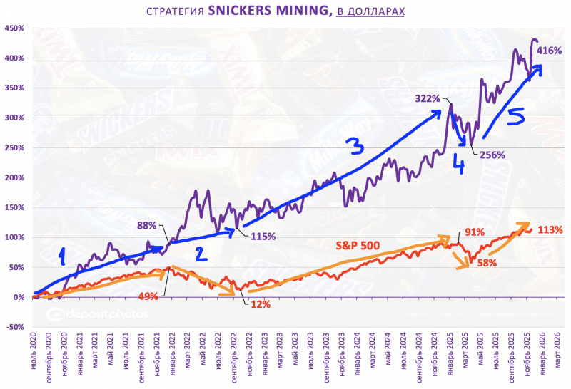 Snickers Mining удалось в 5-й раз за 6 лет превзойти S&P 500 TR.