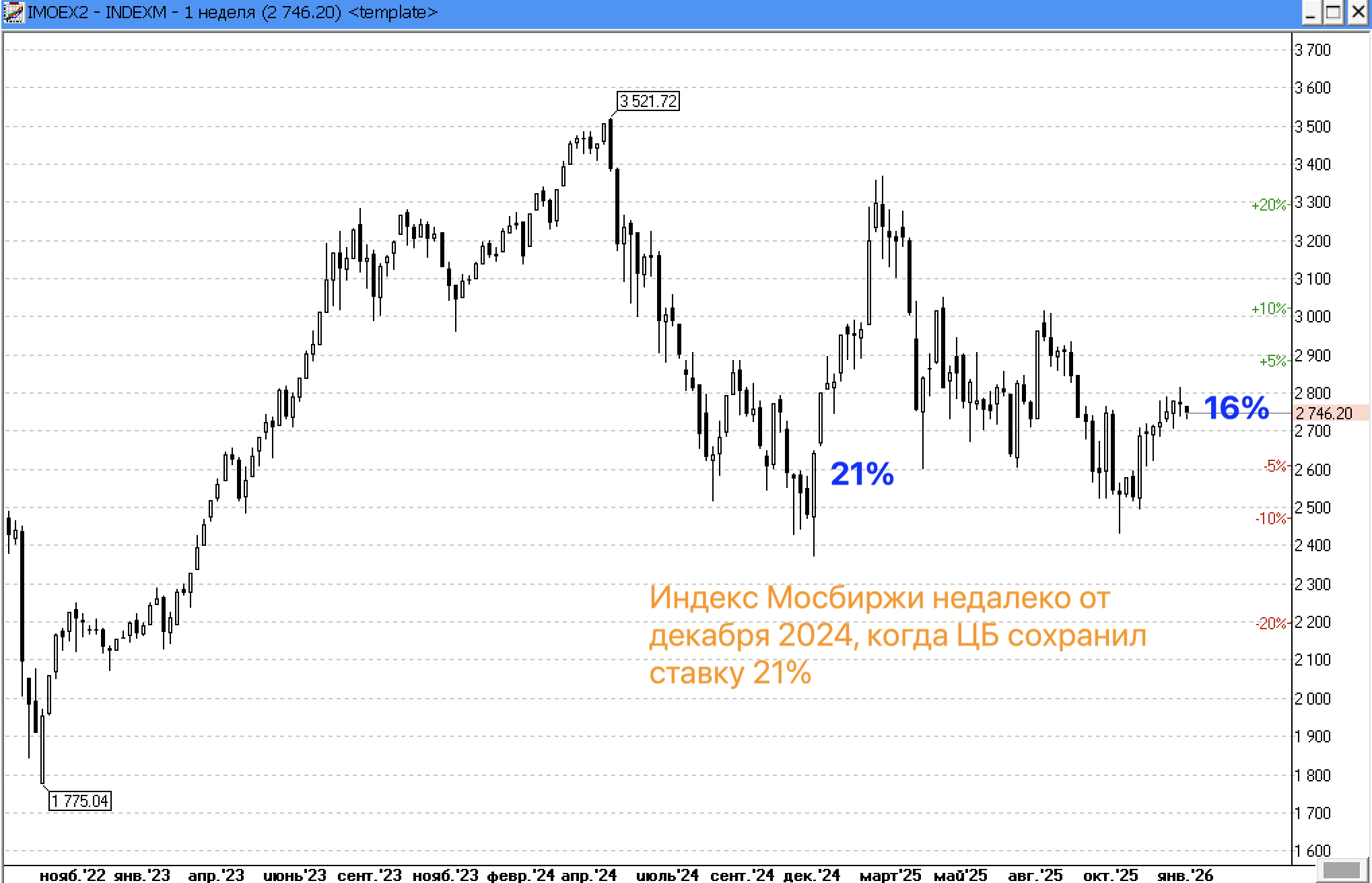 Если считать от последнего пика, то есть от мая 2024 года, то рынок все ещё ниже даже с учётом дивидендов, а стратегии повыше.