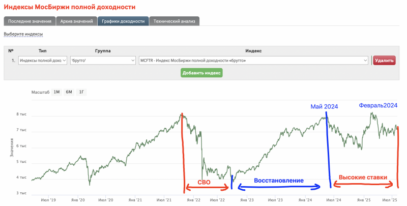 Как это выглядит в динамике с наложением на график индекса МосБиржи.
