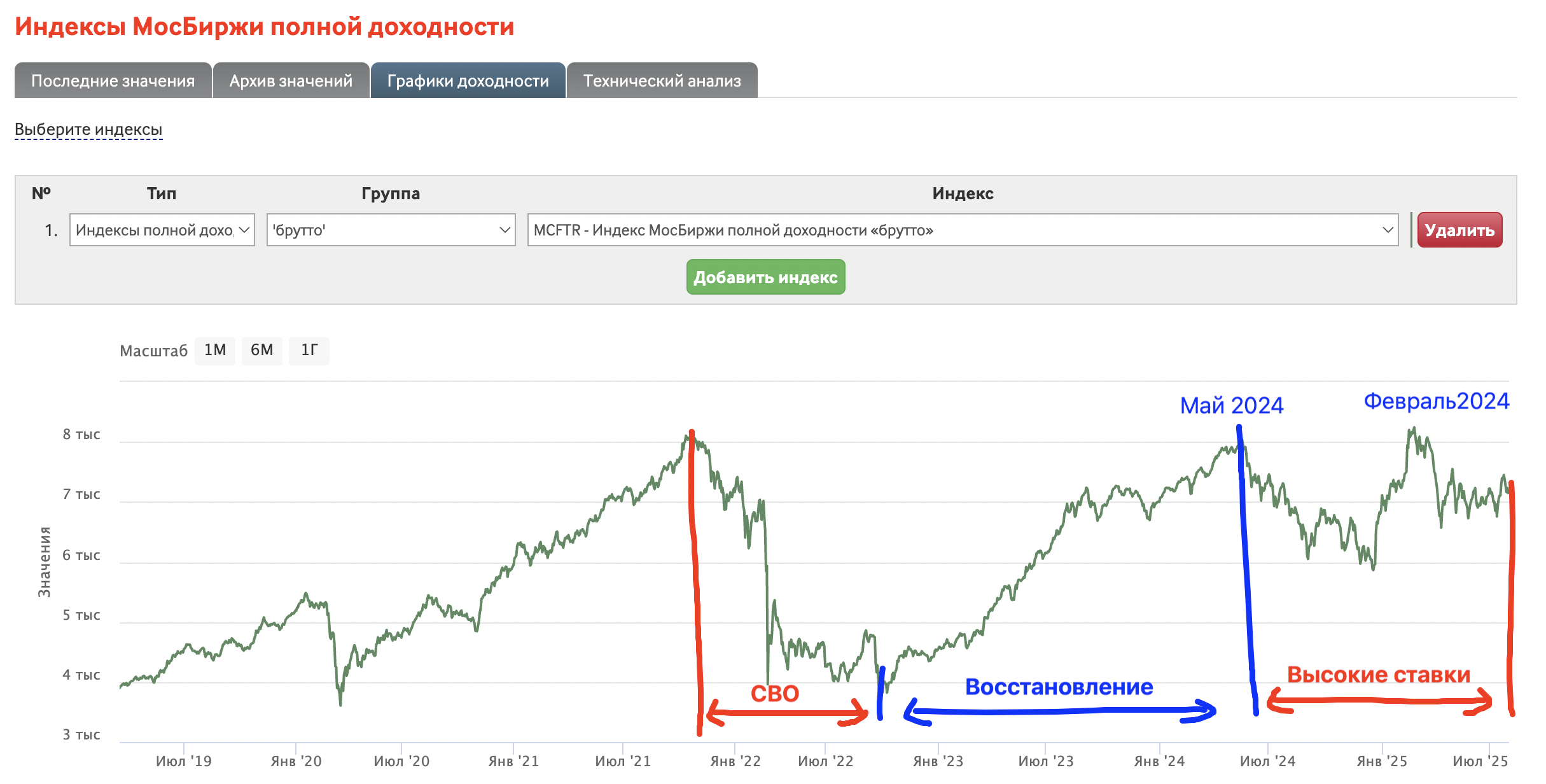 С мая 2024 года, когда индекс миновал локальный пик прошло 15 месяцев. Для многих тяжелейших 15 месяцев, когда любовь к рынку сменяется в лучшем случае безразличием.