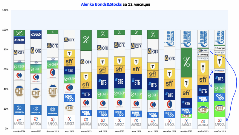 Ну и в зависимости от тайминга, смотря по какой ставке я выйду из акций, будет зависеть доля в следующем году.