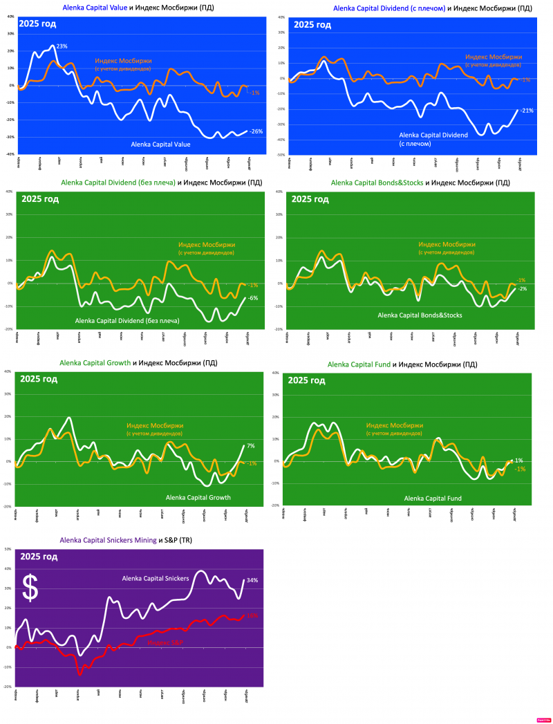 Стратегии, где не используются плечи Bonds&Stocks, Dividend, Fund и Growth приблизились к динамике индекса - хвастаться в 2025 году нечем, но и быть на уровне индекса в плохой год это не самый плохой результат.