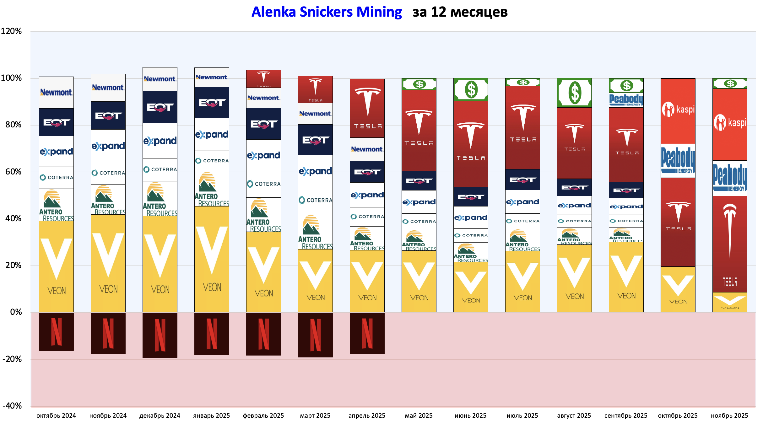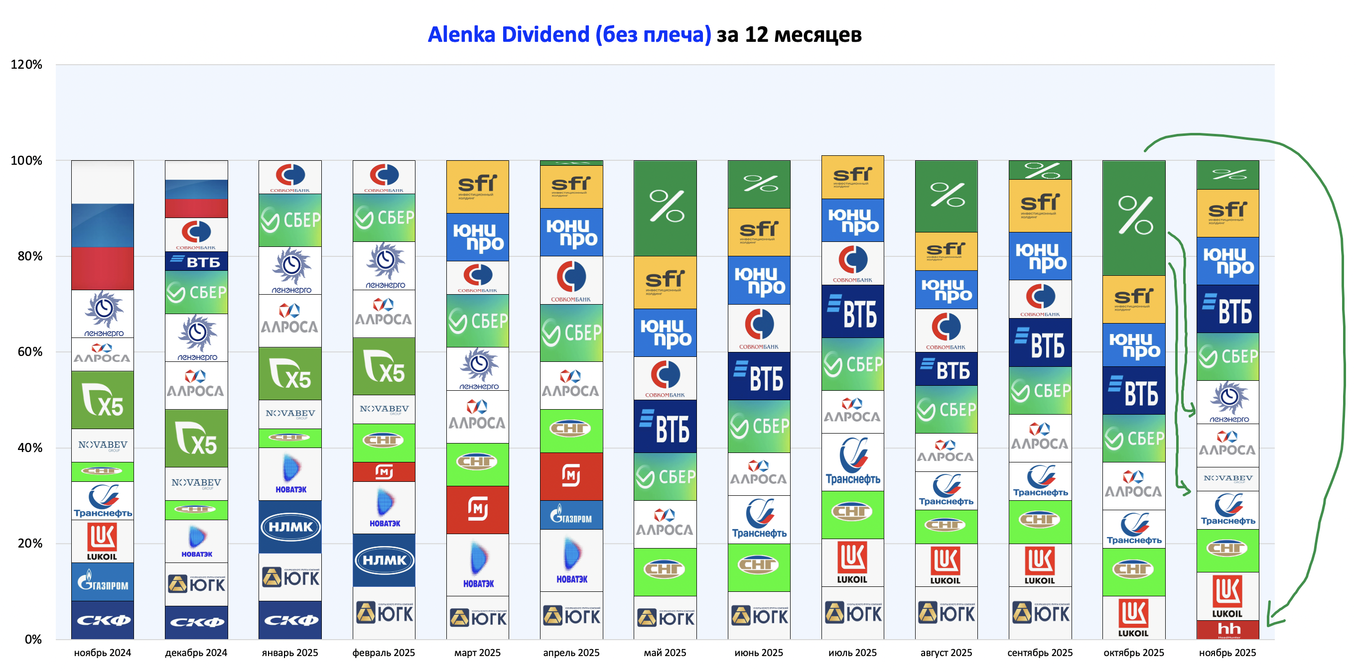 РУСАГРО продан, и его доля перераспределилась по остальным бумагам. Акции выросли, горизонт не ясен, отчёт за 3-й квартал не показался прорывным.